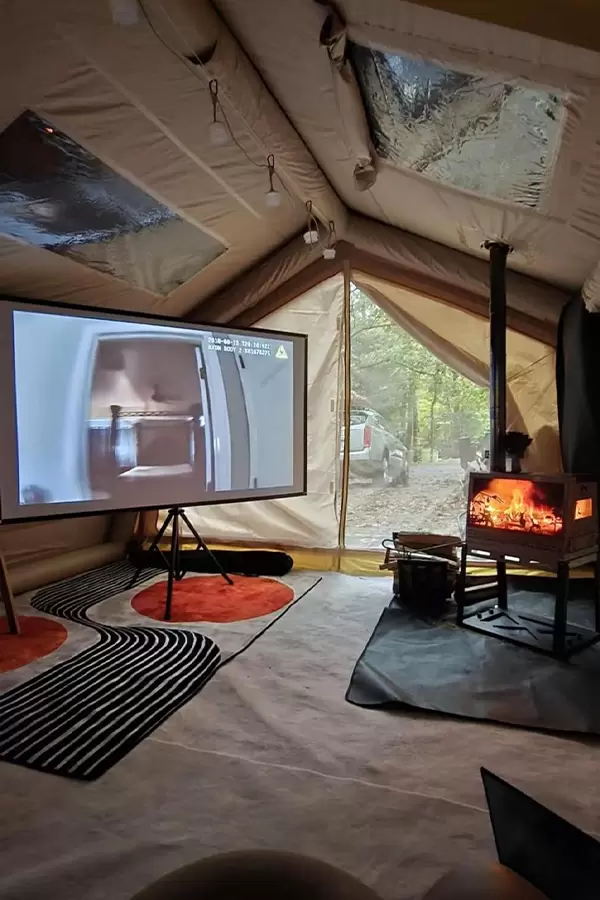 VERWANDTE ANWENDUNGSSZENARIEN Verwandeln Sie Ihr Camping-Erlebnis mit dem revolutionären, doppelwandigen Holzofen in einen gemütlichen, warmen Rückzugsort . Dieser innovative Ofen wurde für moderne Abenteurer und Glamping-Fans entwickelt und bringt den Charme eines knisternden Feuers in jedes Zelt, jede Hütte oder jeden anderen Unterstand im Freien.